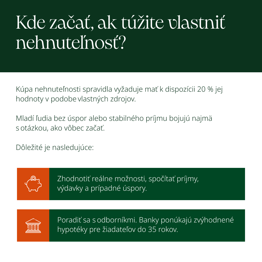 Kúpa bytu je najväčšou výzvou tam, kde si mladí ľudia po skončení štúdií najľahšie nachádzajú prácu. Týka sa to, samozrejme, hlavného mesta, ale prekvapivo i viacerých krajských a niektorých okresných miest. Pozrite si našu infografiku. Ak plánujete kúpu vlastného bývania, nech vás inšpiruje v tom, že na tento životný krok sa oplatí dobre pripraviť. Môžete začať vo svojej banke, kde nájdete informácie o hypotékach, sporení aj investovaní.