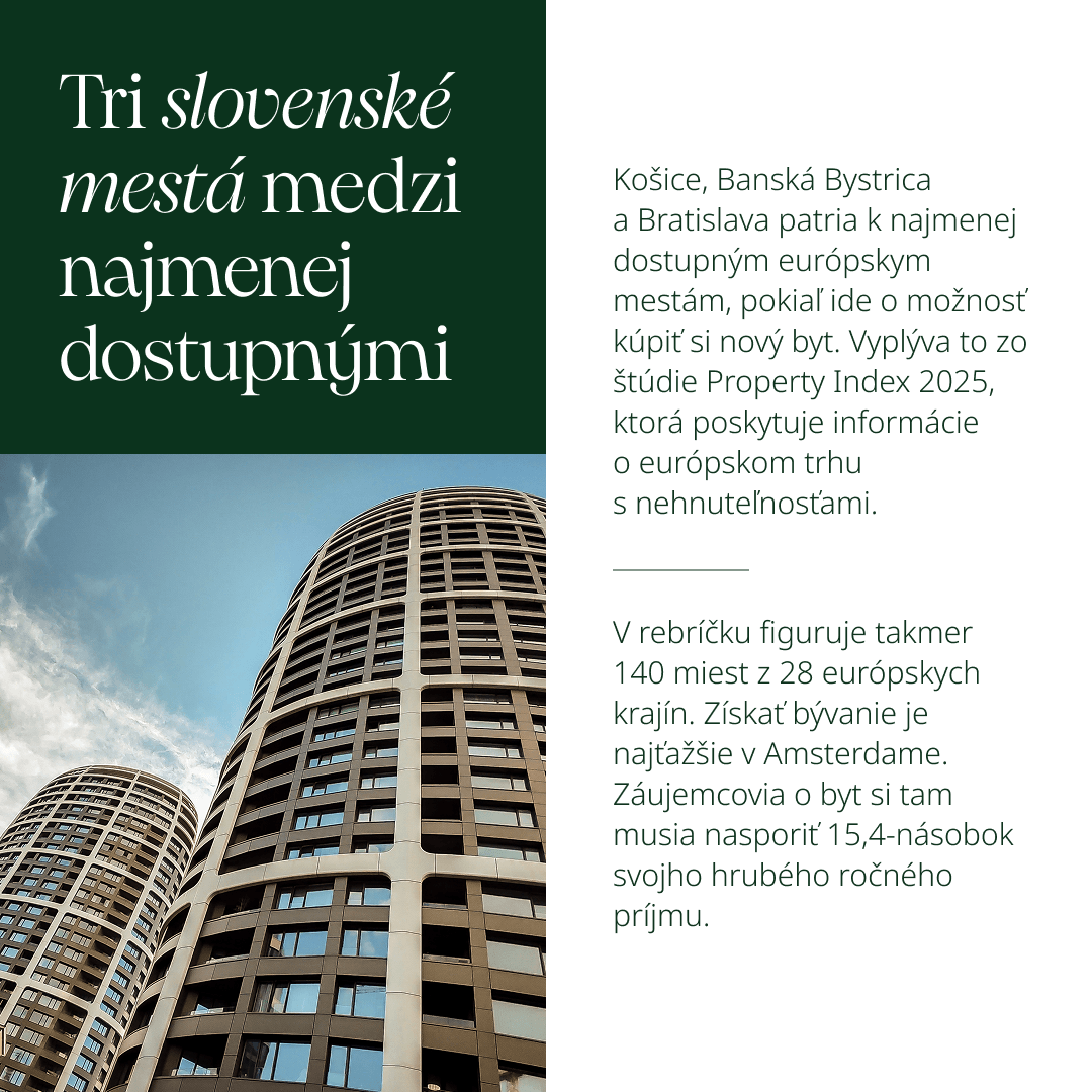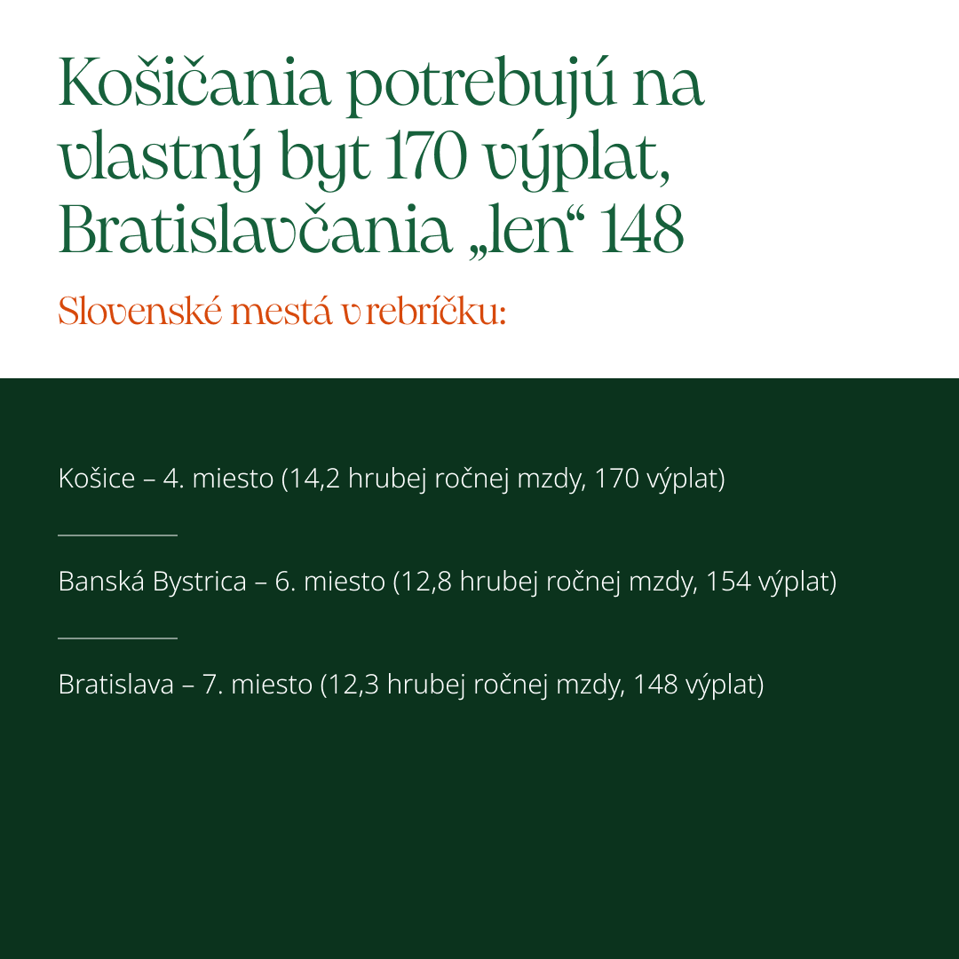 Slovensko sa zaradilo medzi krajiny s najťažšou dostupnosťou bývania. Mať vlastný byt je pre mnohých sen, ktorý nepatrí k nereálnym, no treba mu podriadiť mnohé každodenné návyky i niektoré strednodobé plány. Pozrite si infografiku o dostupnosti vlastných aj investičných bytov.